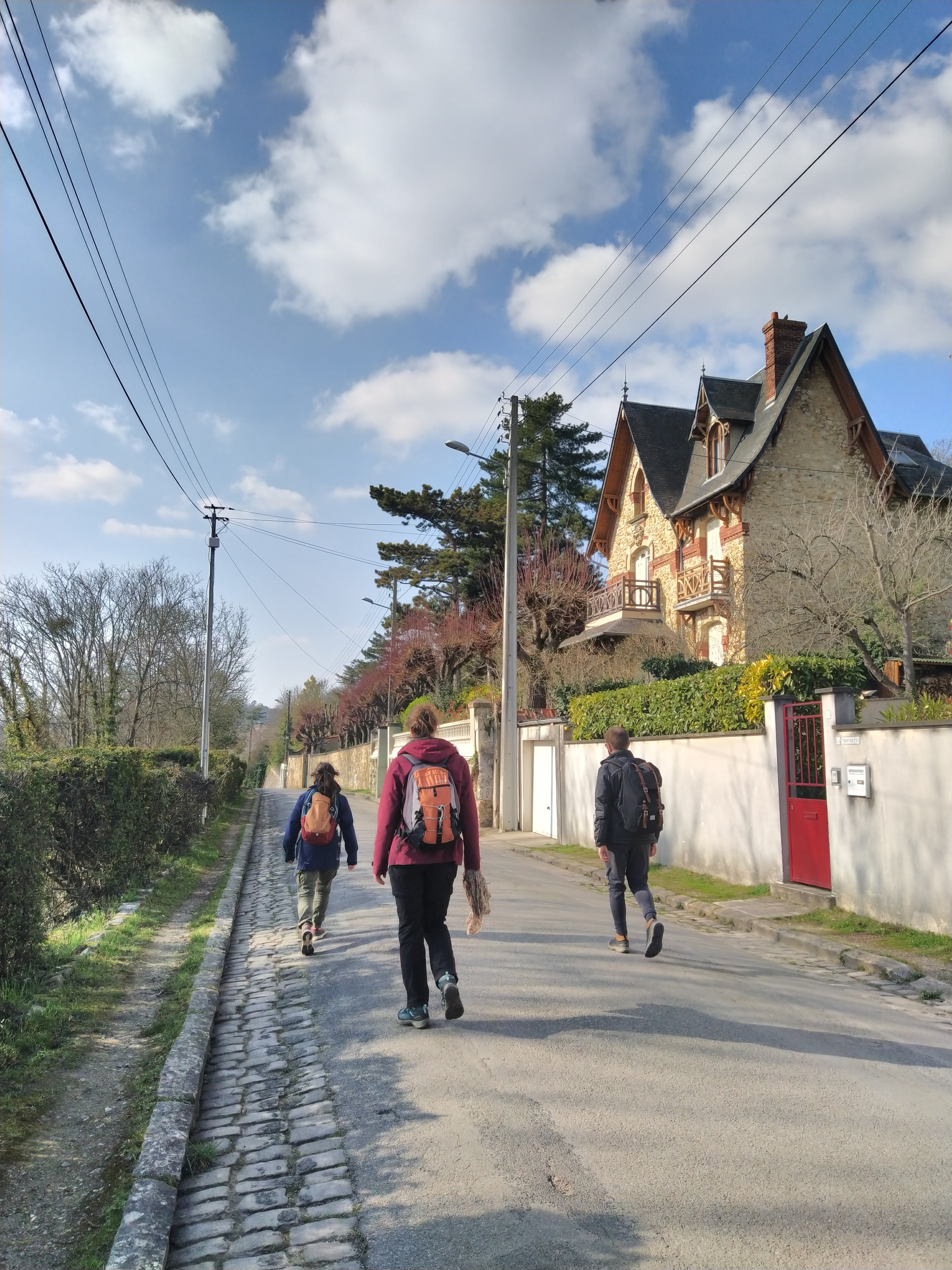 Rendez-vous à la gare de Poissy où nous nous étions arrêtés. Nous avons assez vite décidé de prendre le bus pour Orgeval pour nous éviter un trajet sur du bitume. Après quelques détours parce qu’on ne sait pas lire un GPS, nous avons pu commencer exactement à l’endroit où nous avions quitté le GR1 la fois précédente. Au centimètre près, parce que oui, je suis un peu psychorigide quand je m’y mets !
