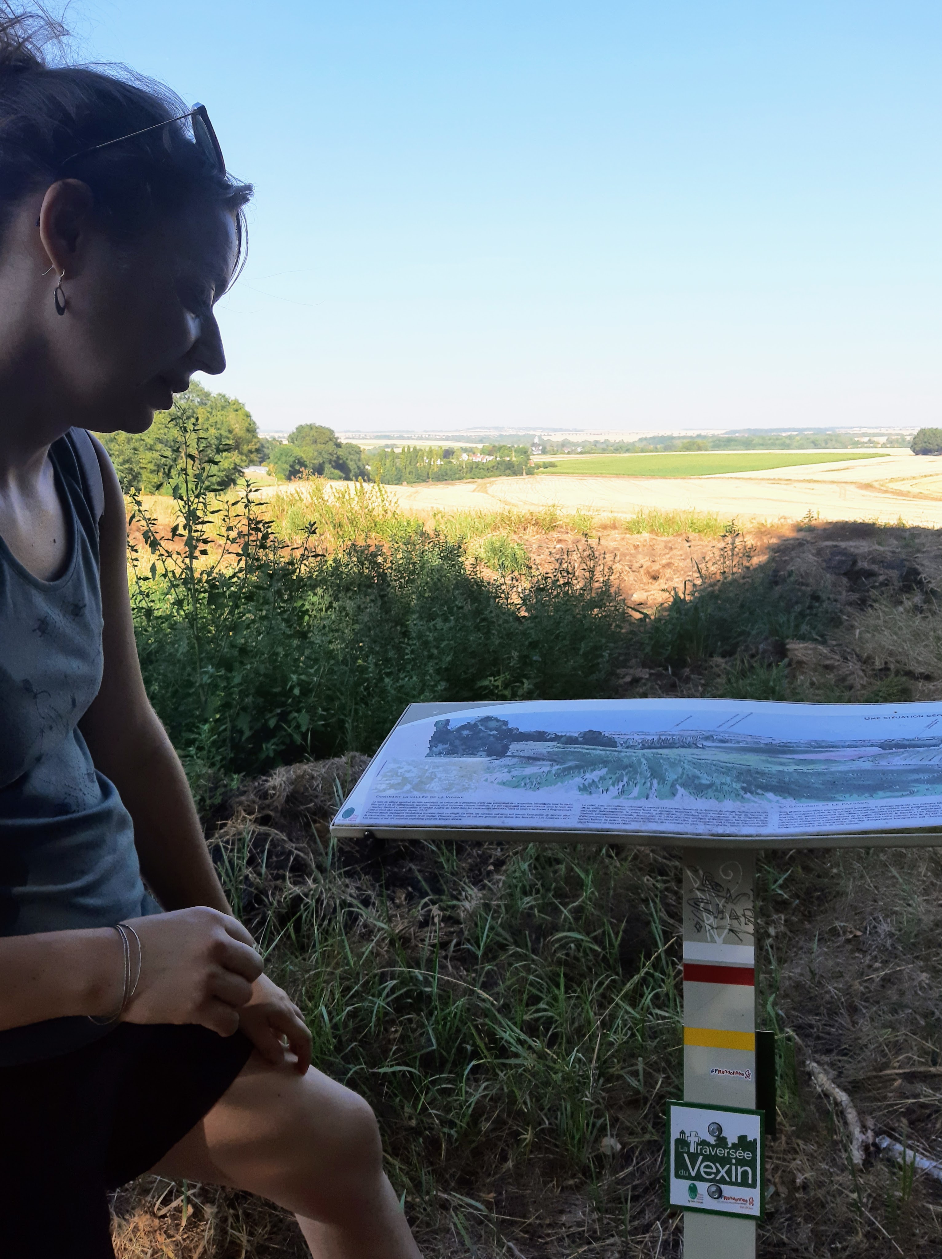 D’Us, nous avons rejoint le GR1D puis marché le long d’une départementale. Nous avons trouvé ce bout pas très agréable, car complètement à découvert, nous étions en plein cagnard et surtout, pas du tout sécurisé ! Nous avons marché le long de la route, les voitures roulaient vite et la circulation était relativement importante pour un dimanche. N’oublions pas que nous sommes toujours en Île-de-France, la région la plus peuplée de France… !