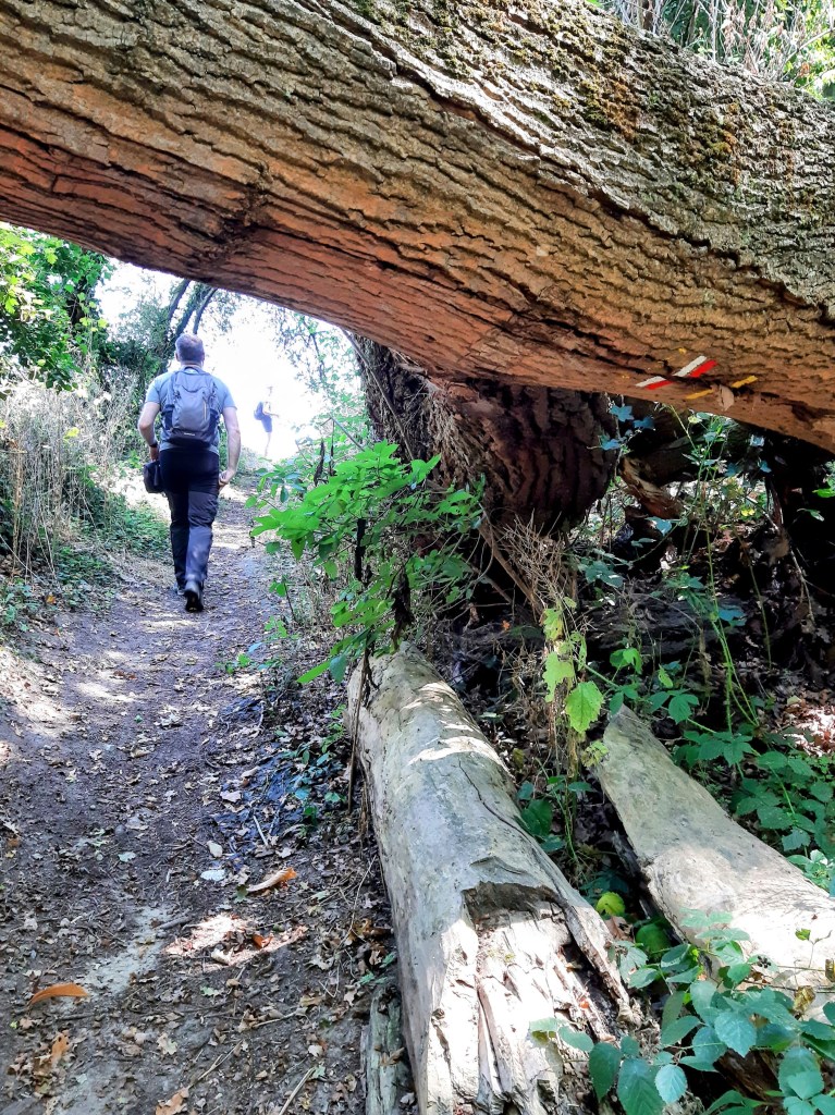 Nous avons pu profiter de la fraîcheur de la forêt d’Epiais-Rhus à Ennery la Croix d’Autel. Les bois étaient marqués de panneaux un peu flippants pour indiquer des zones piégées. Un petit arrêt à l’église de Livilliers et au calvaire de la Croix d’Autel, et nous avons quitté le GR1 pour accéder à la gare de Pontoise, via le GR de Pays Ceinture verte.