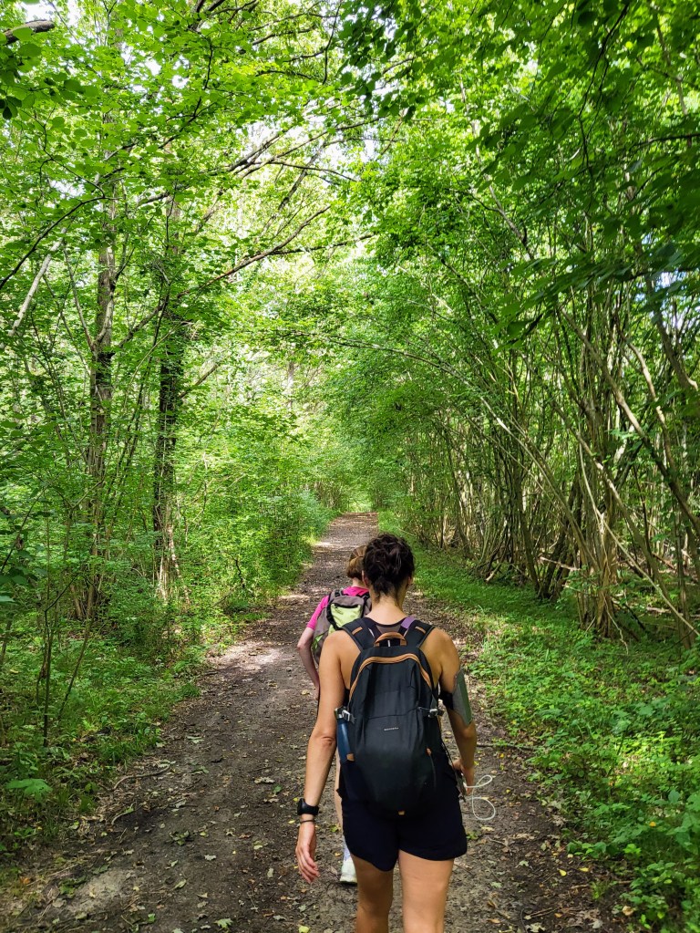 Nous avons retrouvé le GR1 à 800m de la gare, où nous nous étions arrêtés au précédent tronçon. Après Seugy, le tracé passe littéralement devant le Sherwood parc, un parc de loisirs en forêt qui propose de l’accrobranche, du tir à l’arc, de la tyrolienne, etc., sur le thème du Moyen-Âge / Robin des bois. J’avais trop envie de m’y arrêter, mais il nous restait encore quelques kilomètres !